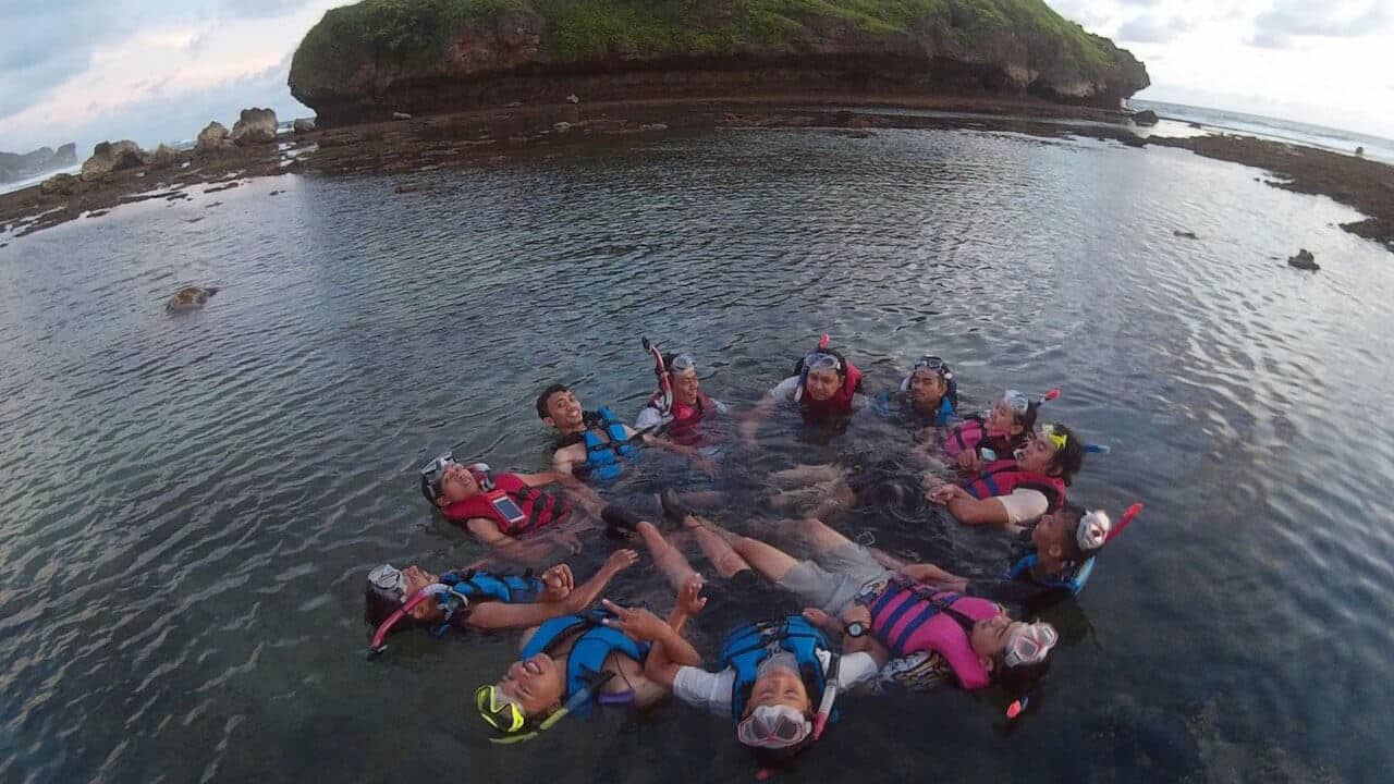 Lalu perjalanan kami lanjutkan kembali, tujuan selanjutnya adalah Pantai Slili Yogyakarta. Wowww pemandangan disana keren banget, airnya biru dan bersih. Kami pun melakukan snorkling menikmati keindahan laut, sungguh indah ciptaan-Mu Tuhan.