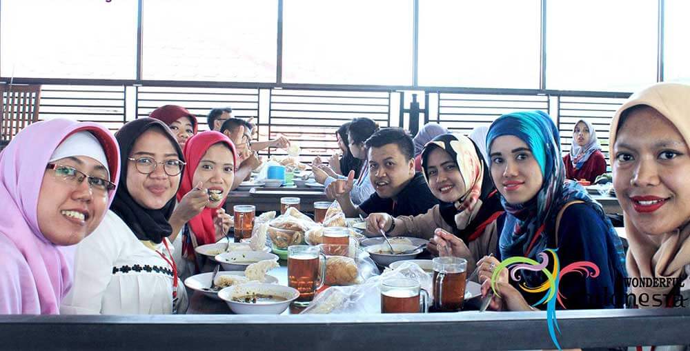 Rombongan langsung mengambil posisi duduk dan menunggu pesanan datang. Tidak lama setelah empal dan nasi datang, mereka semua langsung menghabiskannya. Wow lapar yaa ibu-ibu dan bapak-bapak. Selesai makan siang, kita kbali lagi ke bus dan langsung menuju ke stasiun. Taukaaan ini tandanya apa???