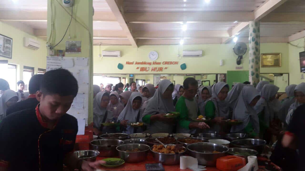 Tujuan selanjutnya adalah makan siang Nasi Jamblang, yang merupakan makanan khas andalan kota Cirebon. Pilihan Rumah Makan kami adalah Nasi Jamblang Ibu Nur yang terletak di Jl. Cangkring II No. 34 Kejaksan Kota Cirebon. Para peserta tour kelihatan sangat menikmati makanan andalan kota Cirebon tersebut, apalagi dengan suasana rasa lapar yang melanda menambah nikmat rasa yang dihasilkan.